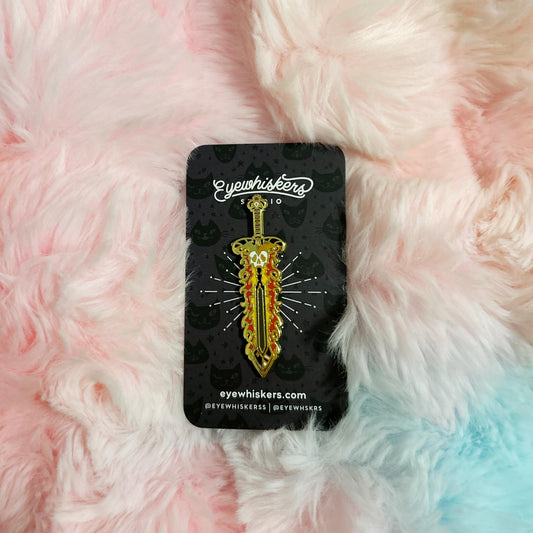 Flaming Skull Sword Enamel Pin • Fantasy Weapon Pin • Fire Blade Goth Pin • RPG DnD Accessory • Demon Slayer Aesthetic Lapel Pin