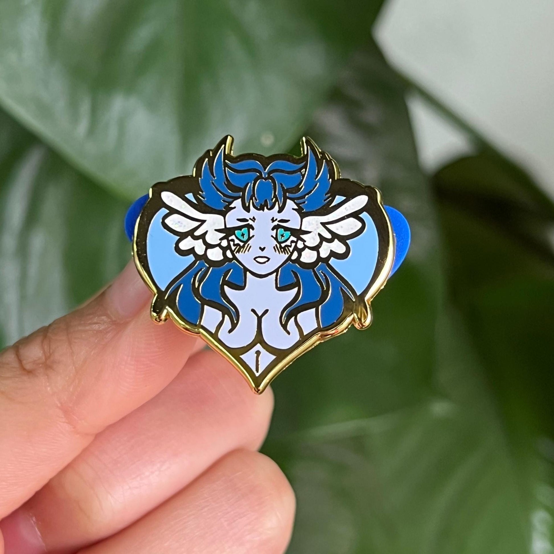 💙 Seraphim Sweetheart Enamel Pin – Celestial Blue Angel Girl 💙
